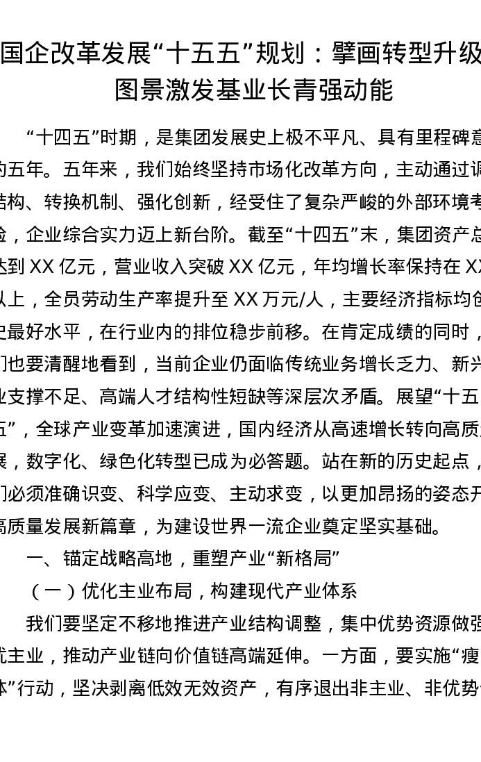 国企改革发展“十五五”规划:擘画转型升级新图景 激发基业长青强动能