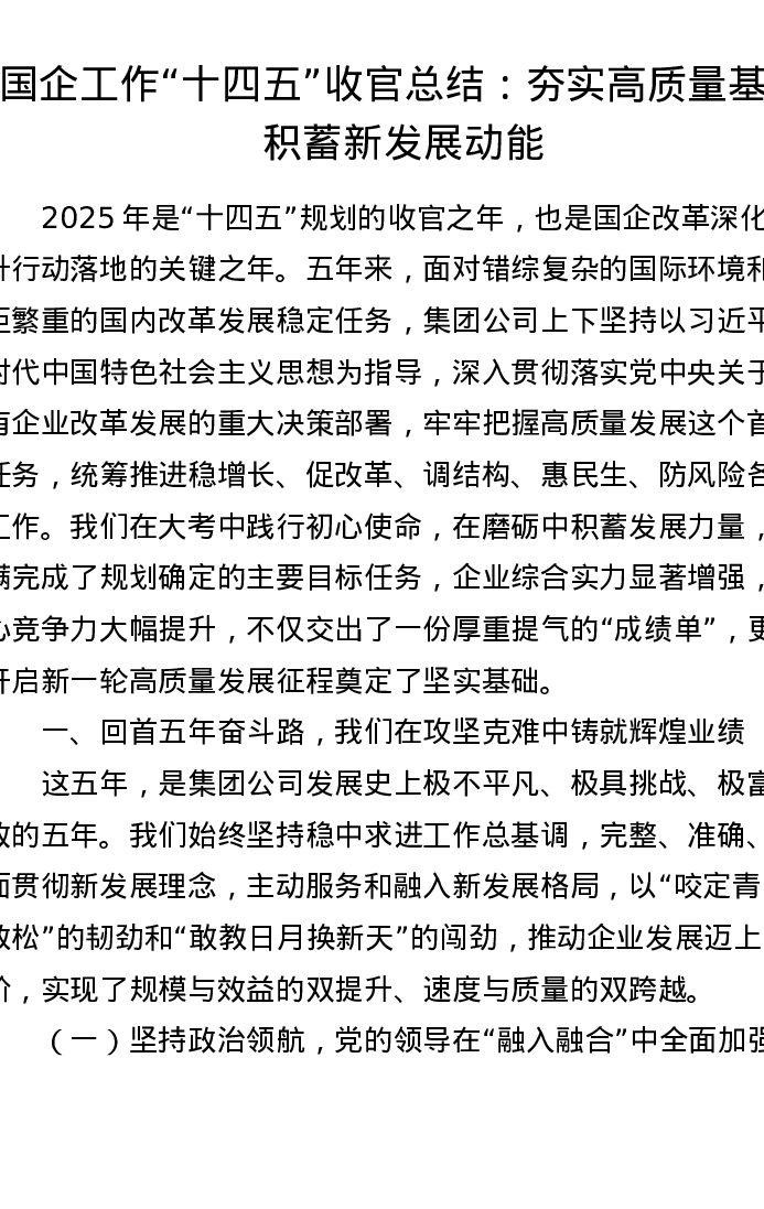 国企工作“十四五”收官总结:夯实高质量基石 积蓄新发展动能