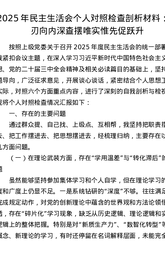 国企主题教育xxxxx班子对照检查材料:深查细照找差距 革故鼎新促发展