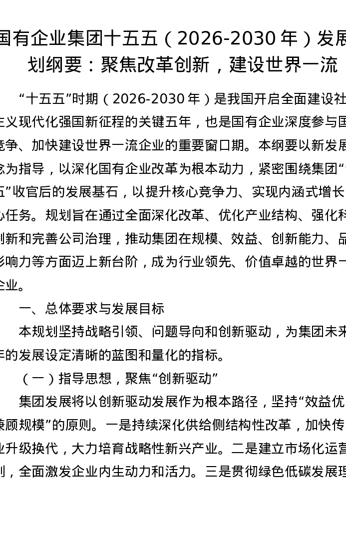 国有企业集团十五五(2026-2030年)发展规划纲要:聚焦改革创新,建设世界一流