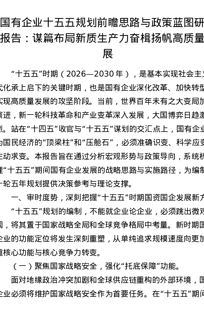 国有企业十五五规划前瞻思路与政策蓝图研究报告:谋篇布局新质生产力 奋楫扬帆高质量发展