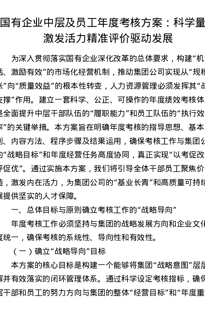 国有企业中层及员工年度考核方案:科学量化激发活力 精准评价驱动发展