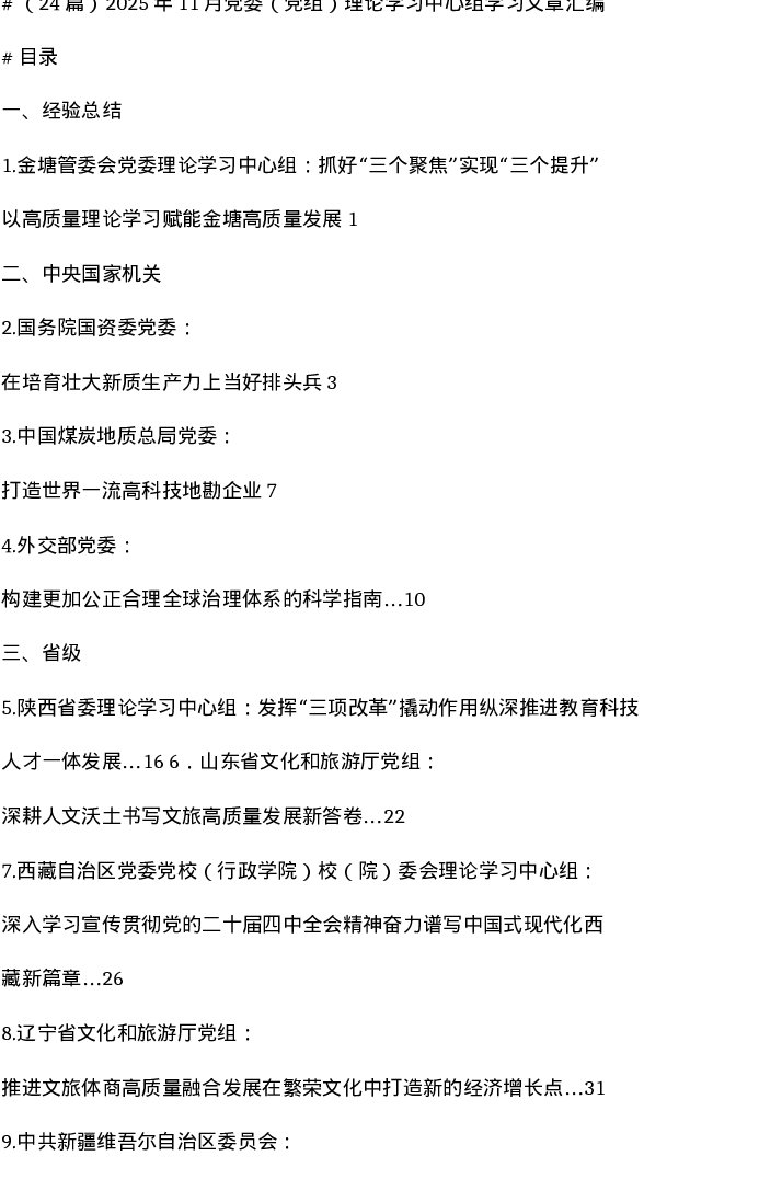汇编:2025年11月党委(党组)理论学习中心组学习文章24篇