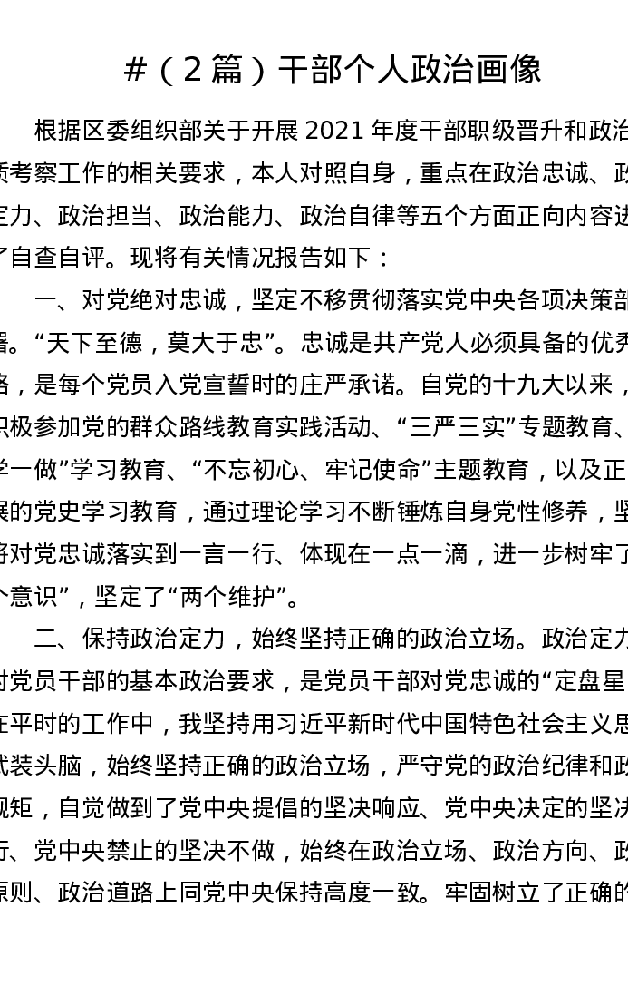 干部个人政治画像2篇