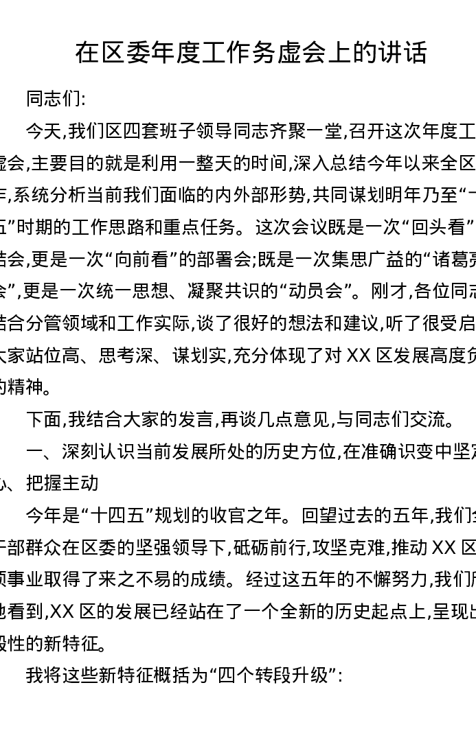 在区委年度工作务虚会上的讲话