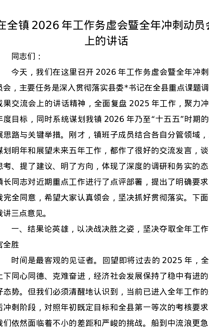 在全镇2026年工作务虚会暨全年冲刺动员会上的讲话