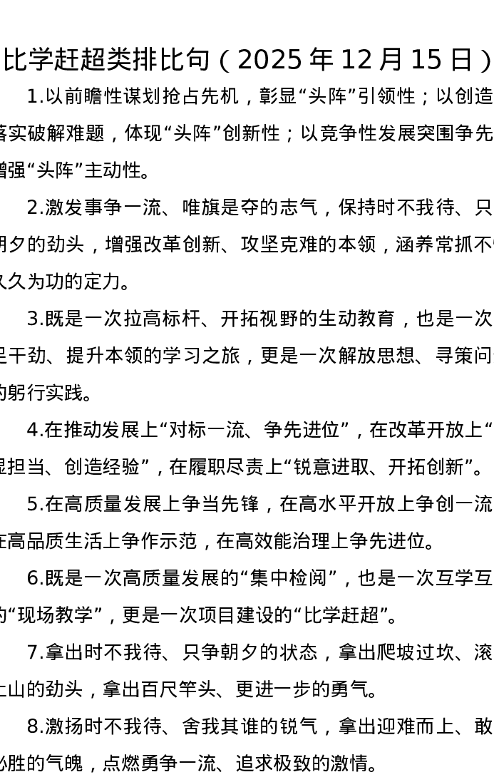 比学赶超类排比句(2025年12月15日)