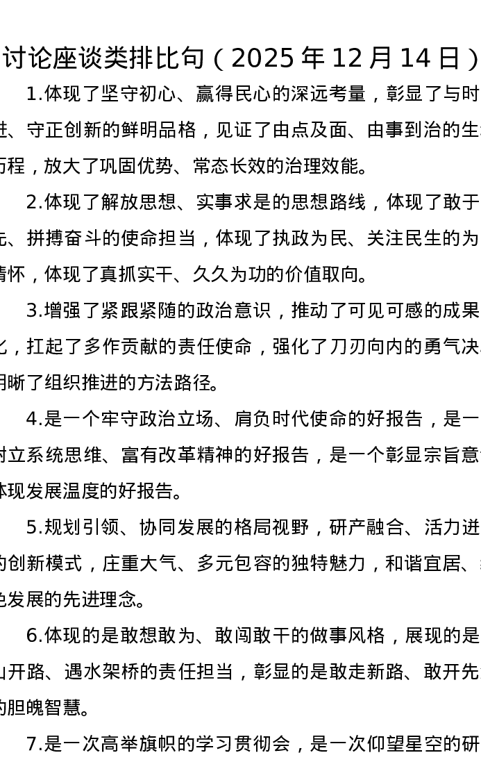 讨论座谈类排比句(2025年12月14日)