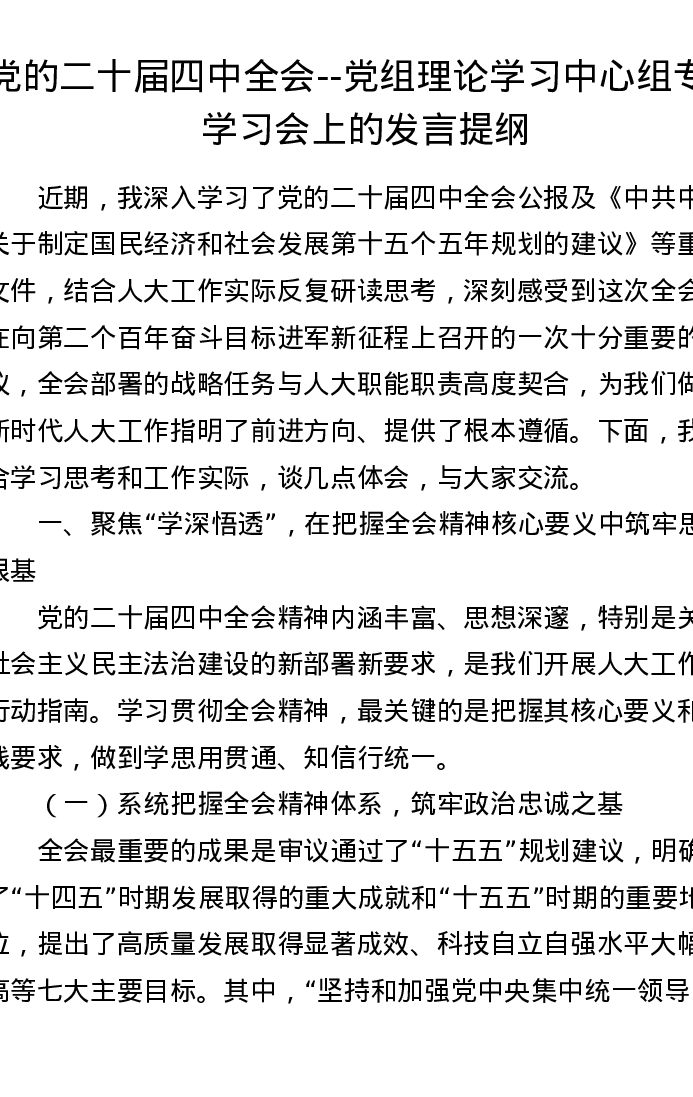 党的二十届四中全会--党组理论学习中心组专题学习会上的发言提纲