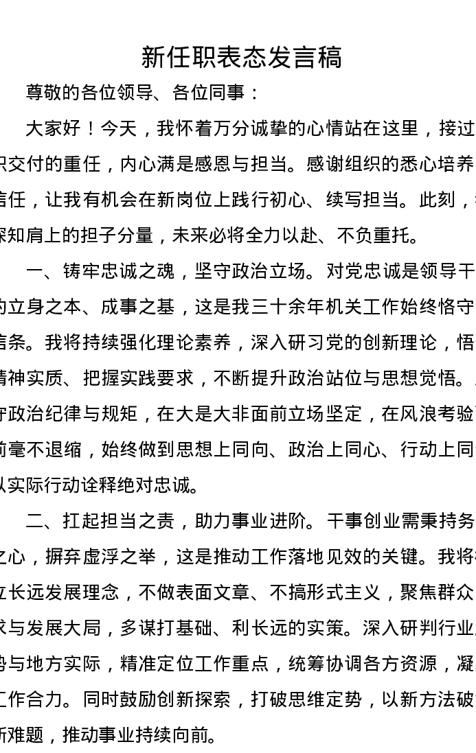 新任职表态发言稿