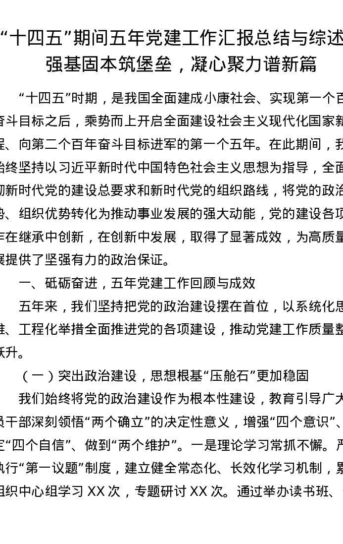“十四五”期间五年党建工作汇报总结与综述:强基固本筑堡垒,凝心聚力谱新篇