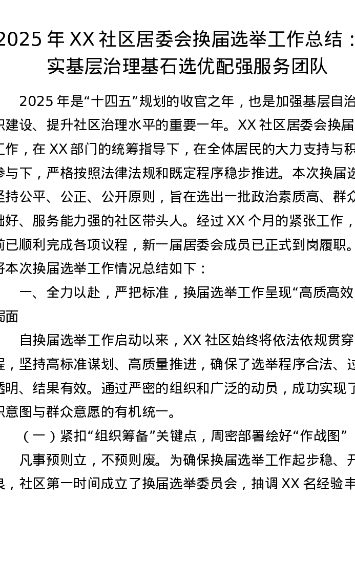 2025年XX社区居委会换届选举工作总结:夯实基层治理基石 选优配强服务团队