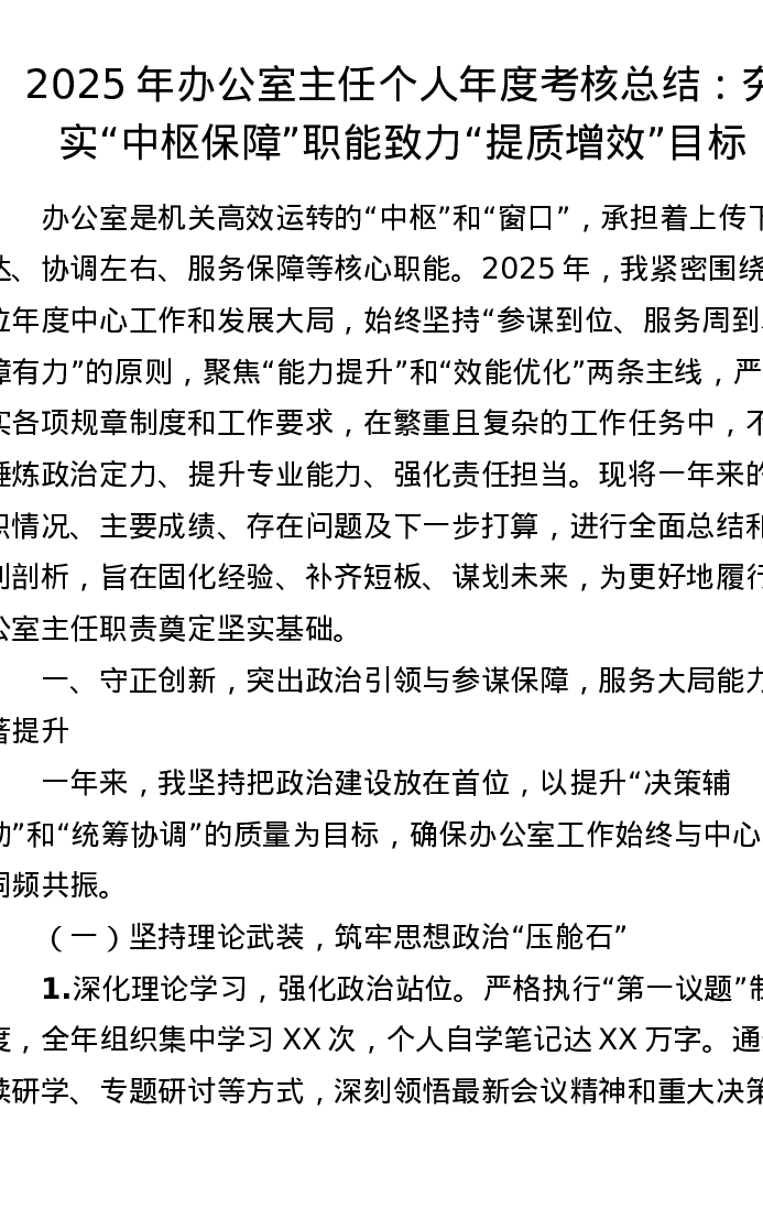 2025年办公室主任个人年度考核总结:夯实“中枢保障”职能 致力“提质增效”目标