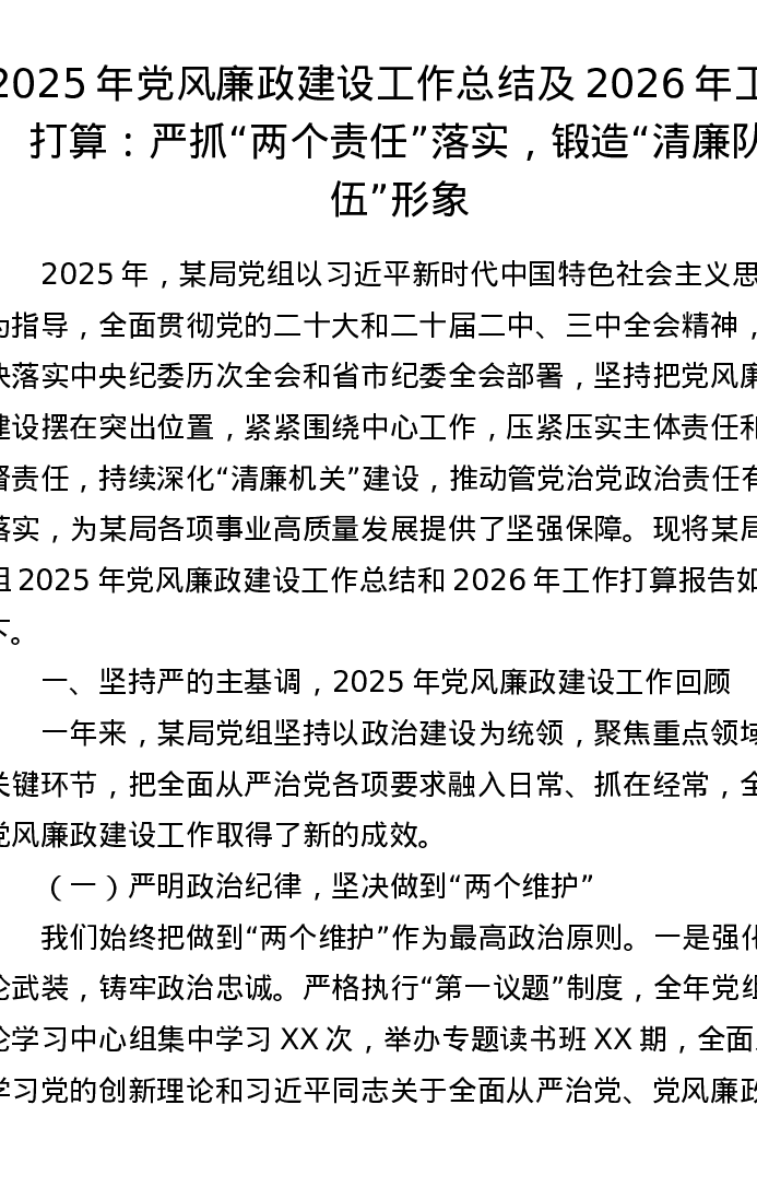 2025年党风廉政建设工作总结及2026年工作打算:严抓“两个责任”落实,锻造“清廉队伍”形象
