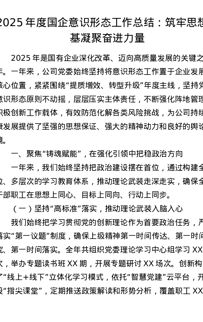 2025年度国企意识形态工作总结:筑牢思想根基 凝聚奋进力量