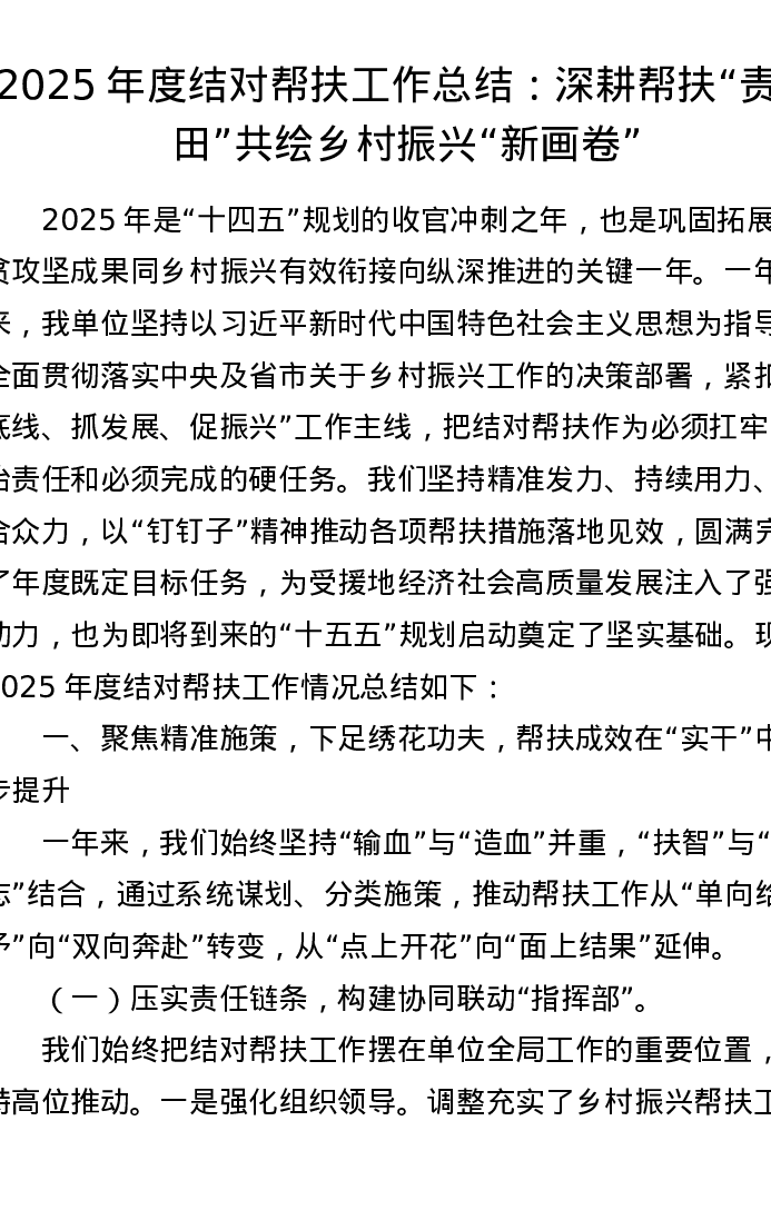2025年度结对帮扶工作总结:深耕帮扶“责任田” 共绘乡村振兴“新画卷”