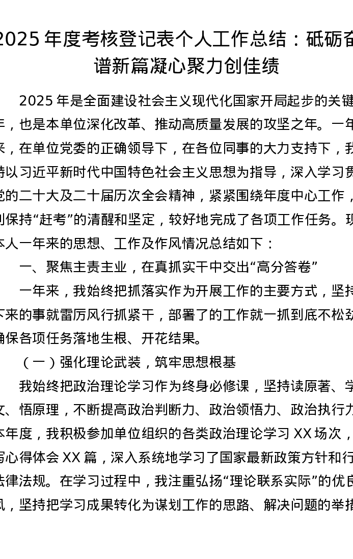 2025年度考核登记表个人工作总结:砥砺奋进谱新篇 凝心聚力创佳绩