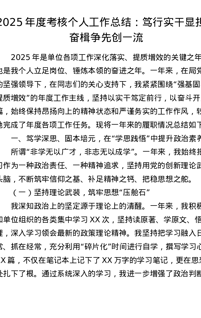 2025年度考核个人工作总结:笃行实干显担当 奋楫争先创一流