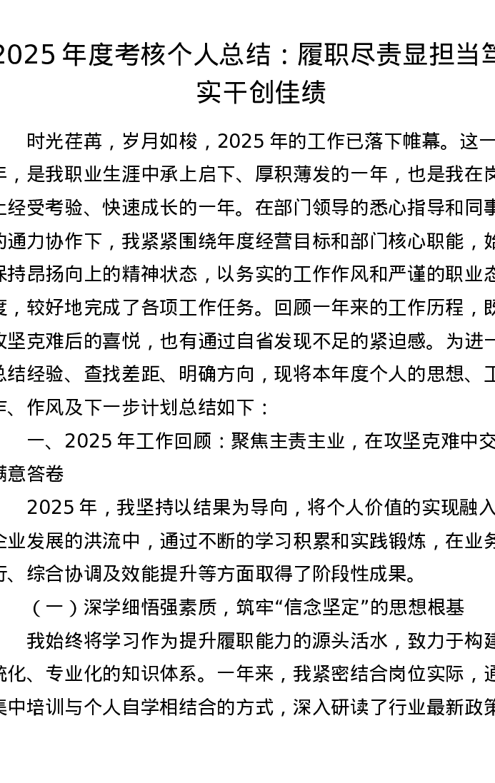 2025年度考核个人总结:履职尽责显担当 笃行实干创佳绩