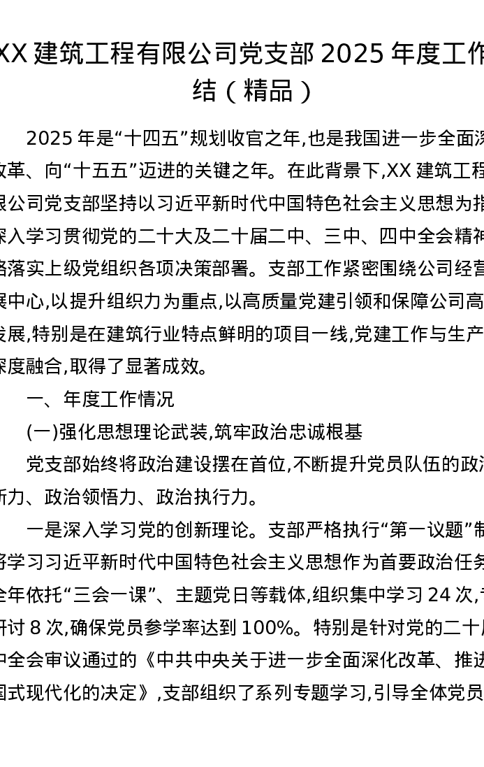 XX建筑工程有限公司党支部2025年度工作总结