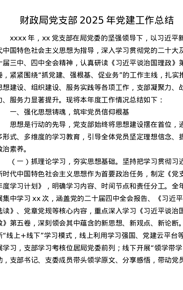 财政局党支部2025年党建工作总结