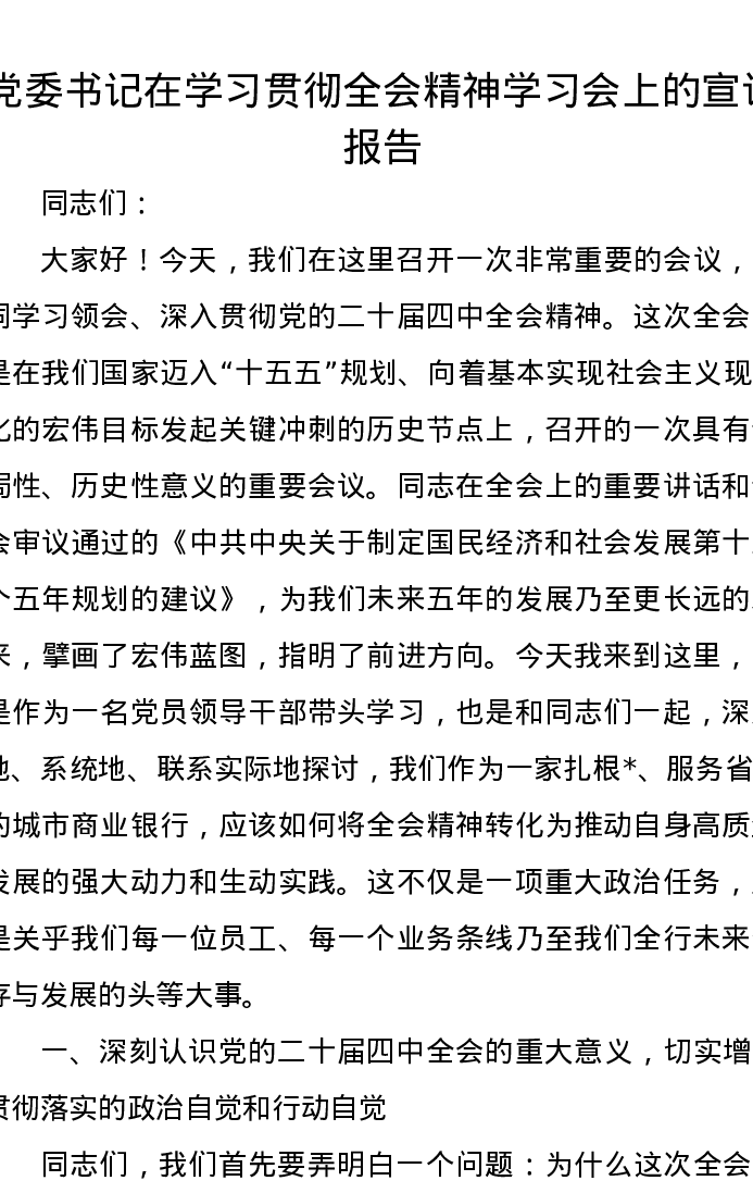 党委书记在学习贯彻全会精神学习会上的宣讲报告