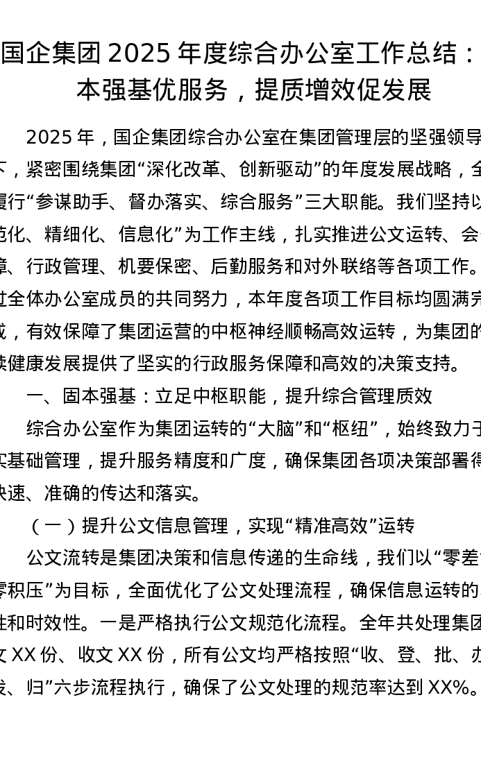 国企集团2025年度综合办公室工作总结:固本强基优服务,提质增效促发展