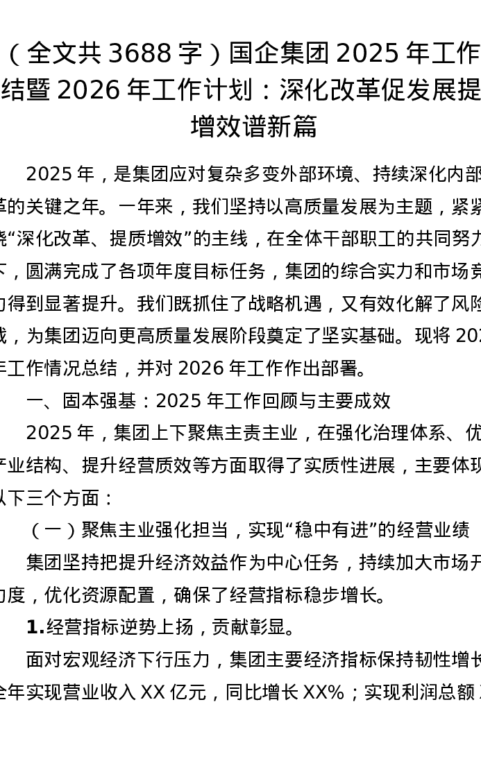 国企集团2025年工作总结暨2026年工作计划:深化改革促发展 提质增效谱新篇(全文共3688字)