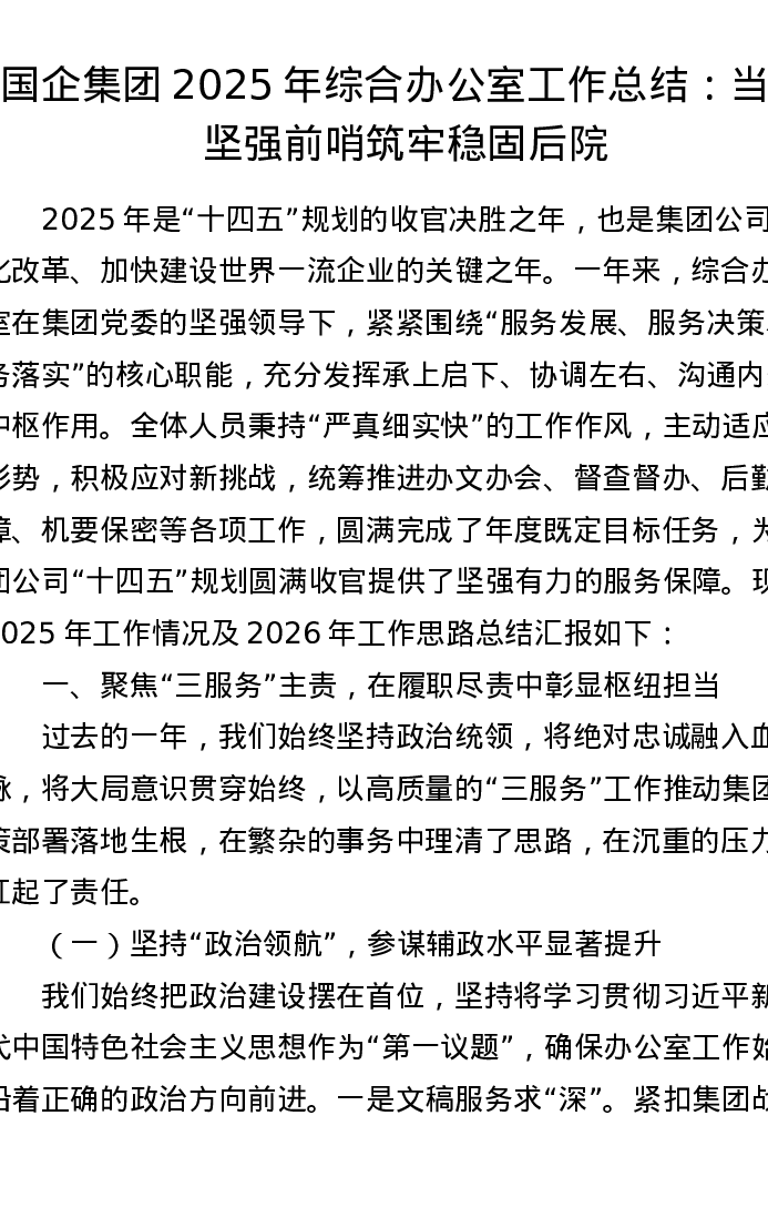 国企集团2025年综合办公室工作总结:当好坚强前哨 筑牢稳固后院