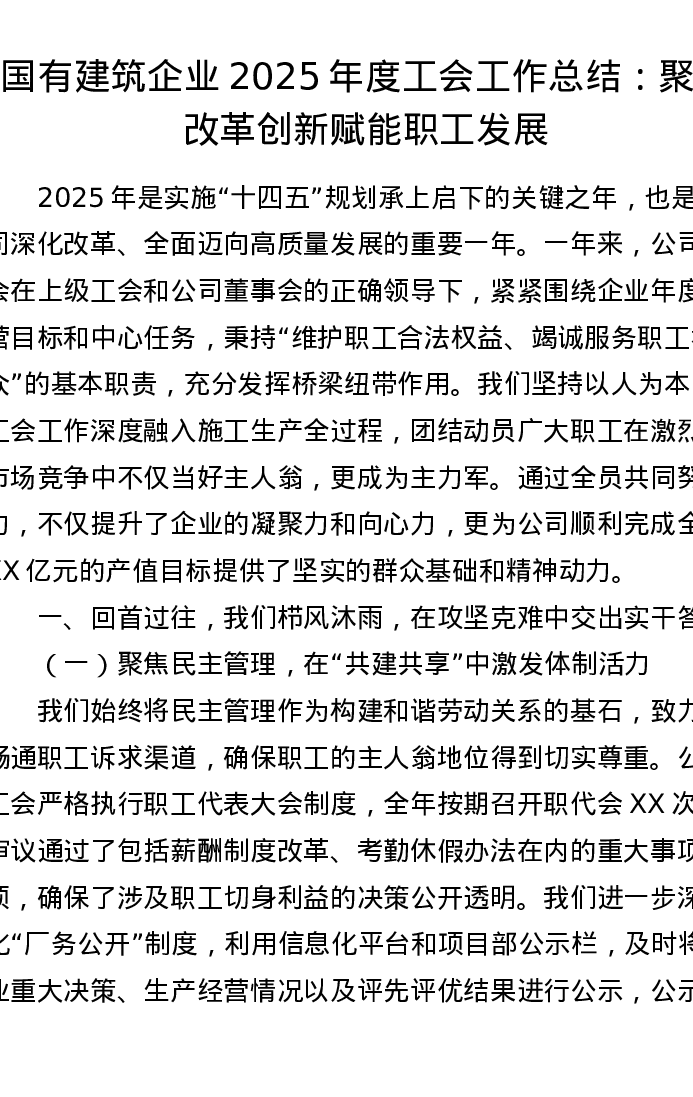 国有建筑企业2025年度工会工作总结:聚力改革创新 赋能职工发展