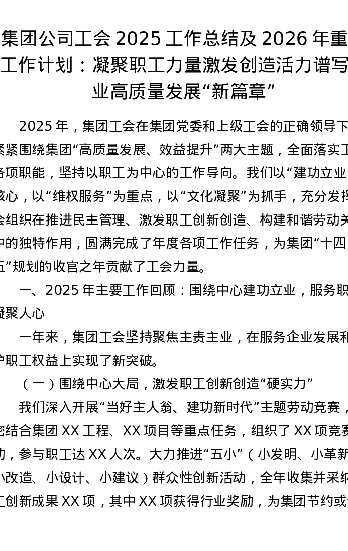 集团公司工会2025工作总结及2026年重点工作计划:凝聚职工力量 激发创造活力 谱写企业高质量发展“新篇章”