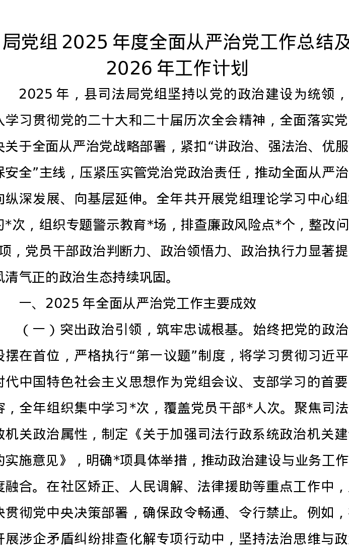 局党组2025年度全面从严治党工作总结及2026年工作计划