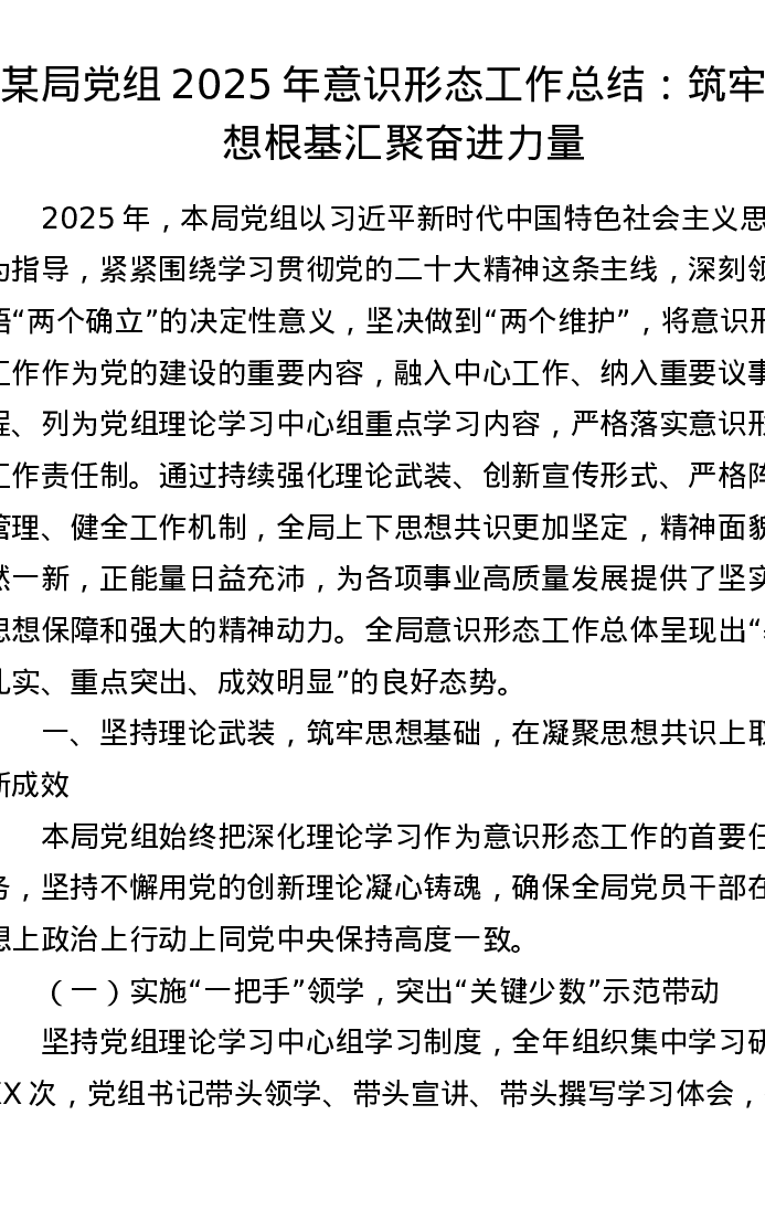某局党组2025年意识形态工作总结:筑牢思想根基 汇聚奋进力量