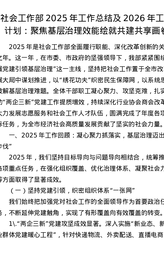 社会工作部2025年工作总结及2026年工作计划:聚焦基层治理效能 绘就共建共享画卷