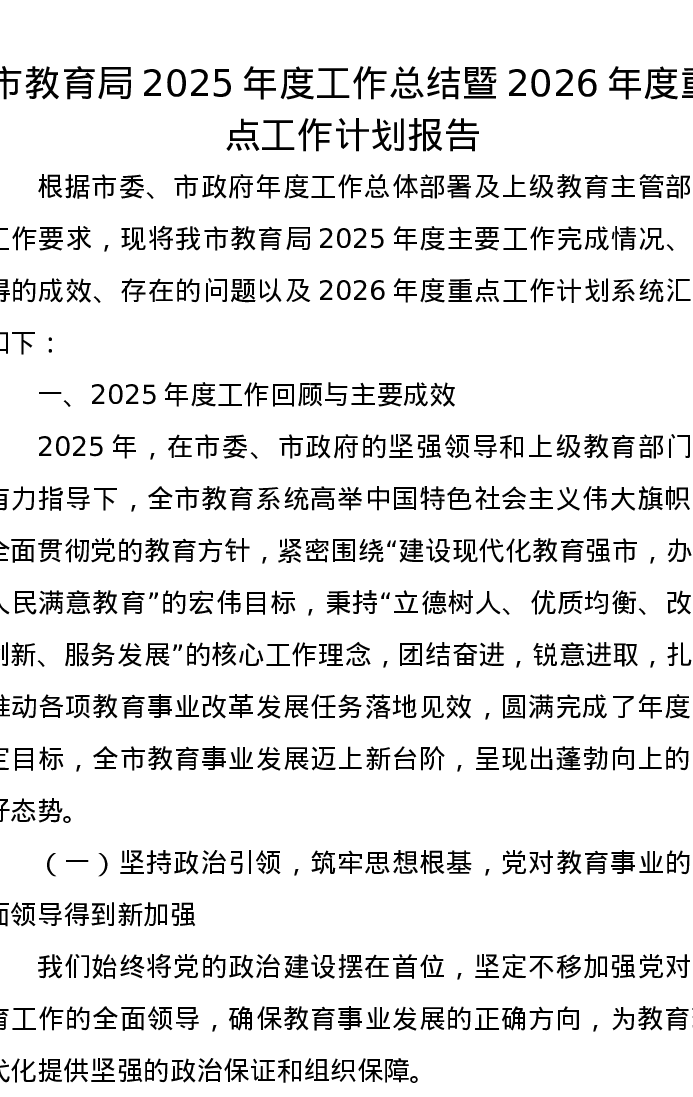 市教育局2025年度工作总结暨2026年度重点工作计划报告