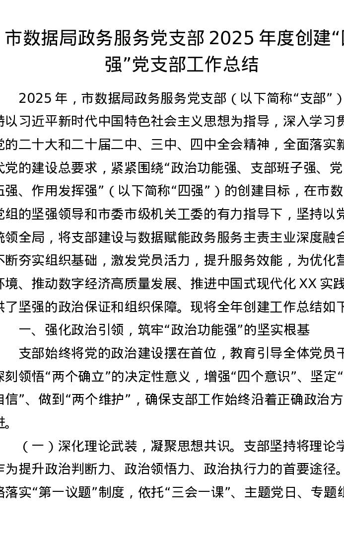 市数据局政务服务党支部2025年度创建“四强”党支部工作总结
