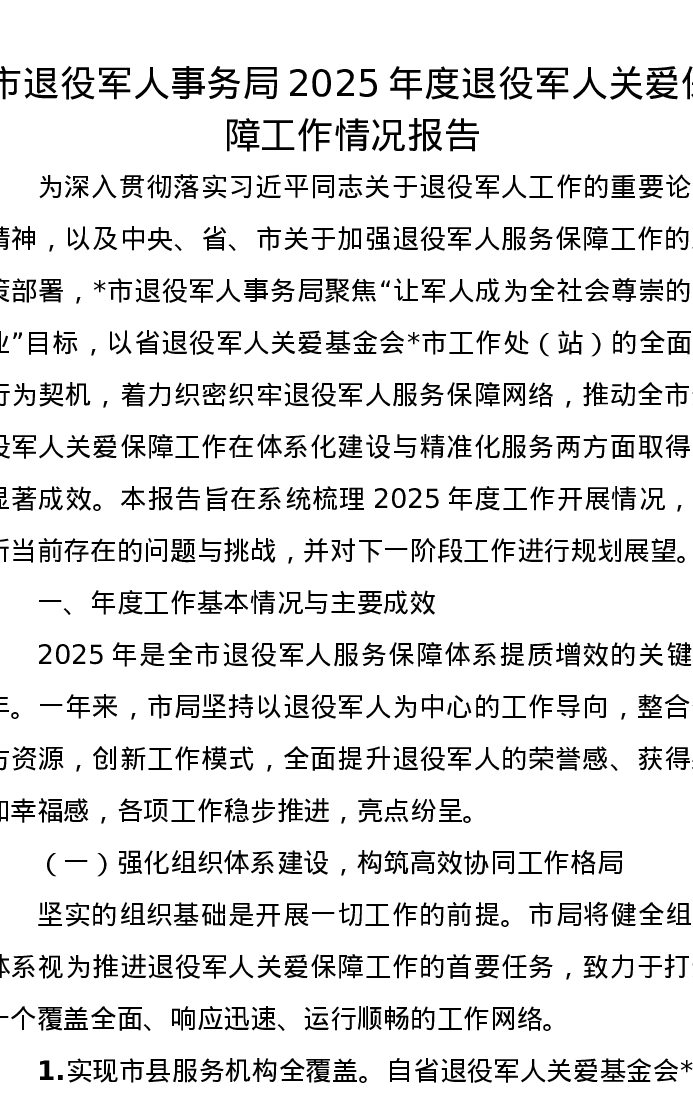 市退役军人事务局2025年度退役军人关爱保障工作情况报告