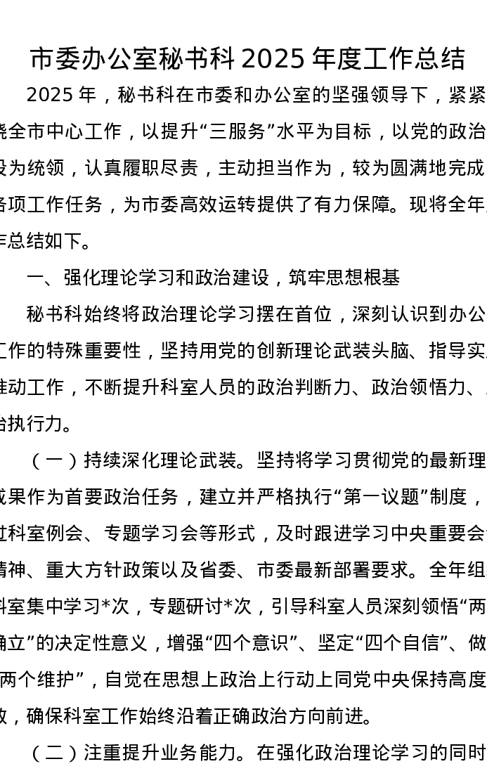市委办公室秘书科2025年度工作总结
