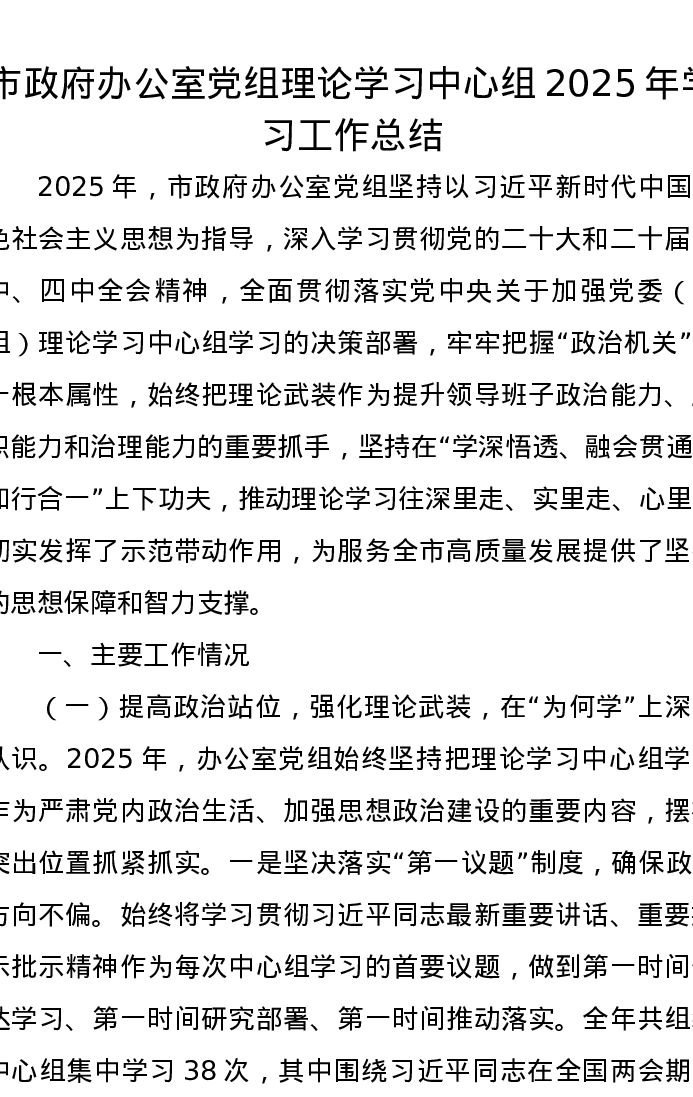 市政府办公室党组理论学习中心组2025年学习工作总结