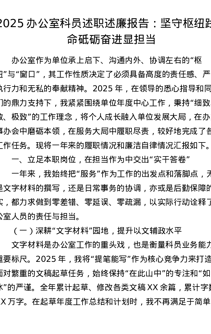 2025办公室科员述职述廉报告:坚守枢纽践使命 砥砺奋进显担当