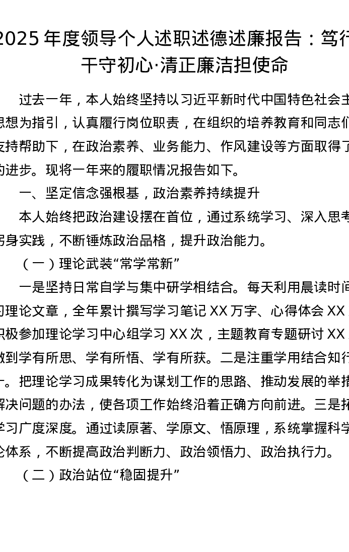 2025年度领导个人述职述德述廉报告:笃行实干守初心·清正廉洁担使命