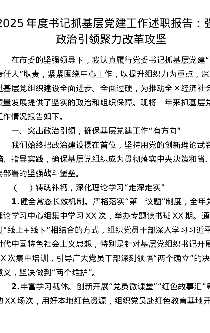 2025年度书记抓基层党建工作述职报告:强化政治引领 聚力改革攻坚