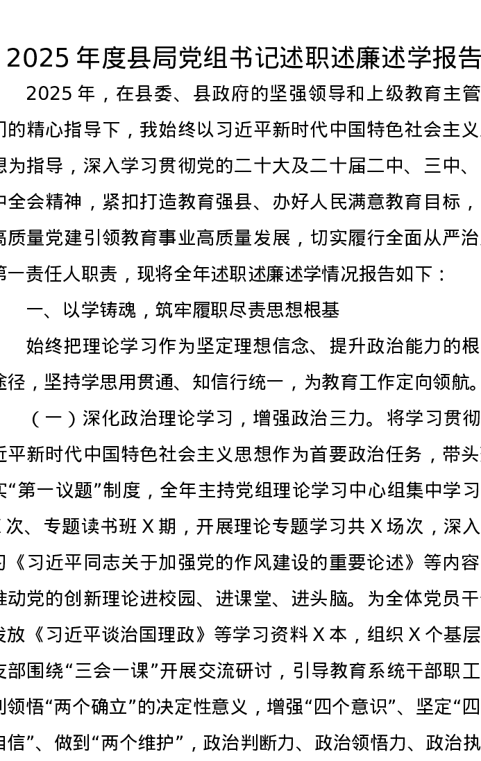 2025年度县局党组书记述职述廉述学报告