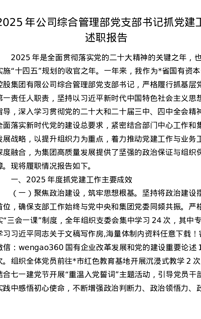 2025年公司综合管理部党支部书记抓党建工作述职报告