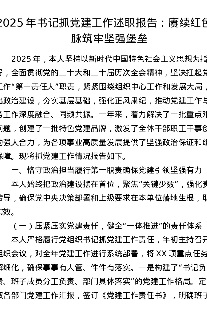 2025年书记抓党建工作述职报告:赓续红色血脉 筑牢坚强堡垒