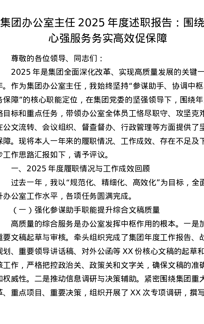 集团办公室主任2025年度述职报告:围绕中心强服务 务实高效促保障