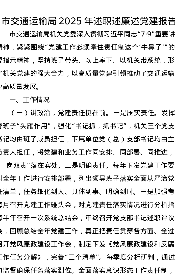 市交通运输局2025年述职述廉述党建报告