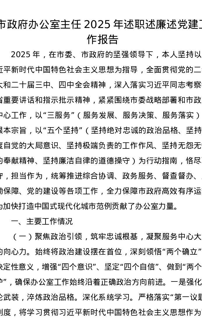 市政府办公室主任2025年述职述廉述党建工作报告