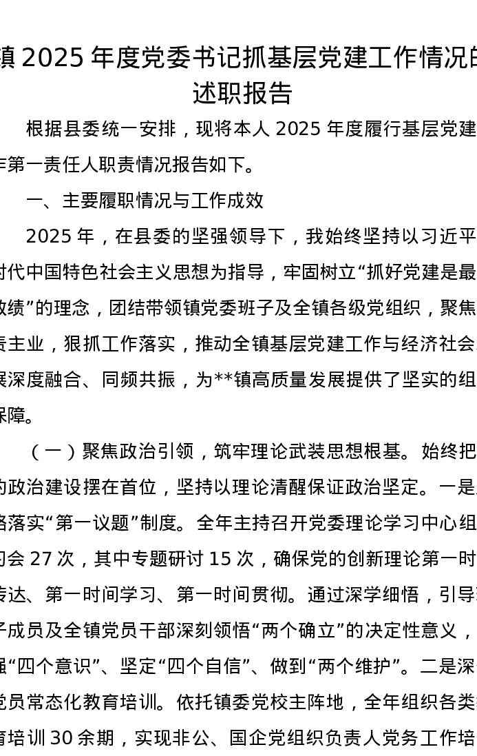 镇2025年度党委书记抓基层党建工作情况的述职报告