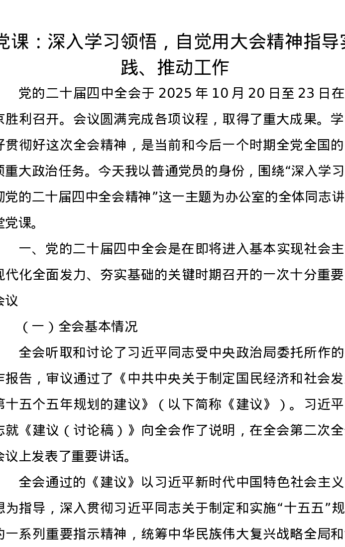 党课讲稿:深入学习领悟,自觉用大会精神指导实践、推动工作